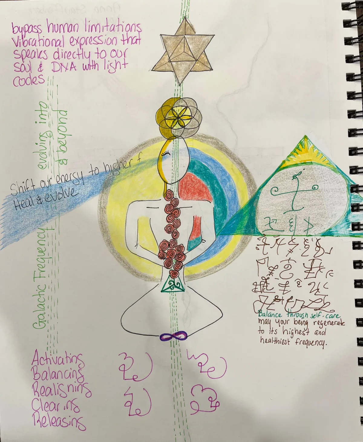 A visual interpretation of your energy field based on colour frequencies, symbols, and movement patterns.